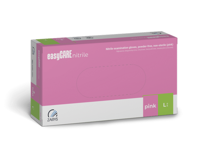 Różowe Rękawice Nitrylowe Bezpudrowe easyCARE L – Niesterylne, Diagnostyczne