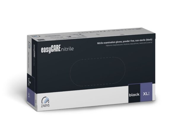 Czarne Rękawice Nitrylowe Bezpudrowe easyCARE XL – Niesterylne, Diagnostyczne