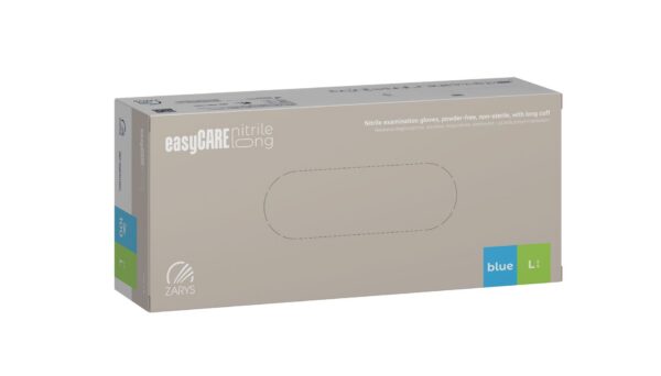 Rękawice nitrylowe easyCARE LONG L – bezpudrowe, przedłużany mankiet, 100 szt.