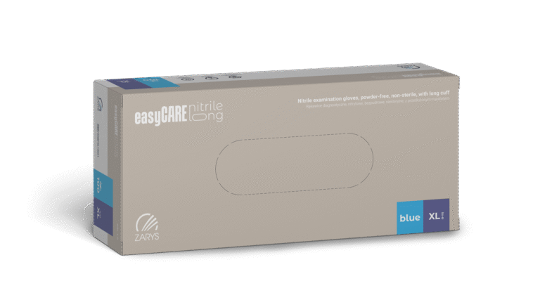 Rękawice nitrylowe easyCARE LONG S – bezpudrowe, przedłużany mankiet, 100 szt.