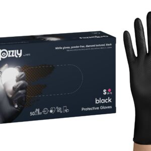 Rękawice Gripzzly nitrylowe ; bezpudrowe ; z diamentową teksturą czarne Rozm S A50