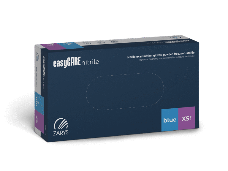 Niebieskie rękawice nitrylowe bezpudrowe easyCARE XS – niesterylne, diagnostyczne
